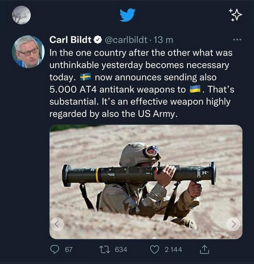 Bildt Upplyser Om Svensk Vapensändning Till Ukraina