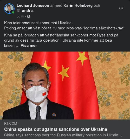 Många länder har infört omfattande restriktioner för Moskva, bland annat drabbat dess banker, handel och största flygbolag. Utrikesminister Wang Yi gjorde sina kommentarer under ett telefonsamtal med sin tyska motsvarighet, Annalena Baerbock.