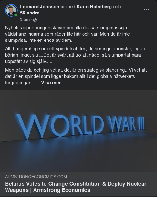 Vitryssland har nu röstat för att ändra sin grundlag och använda kärnvapen. Kina ingick ett nytt avtal med Nordkorea och de sköt iväg ett missiltest idag".