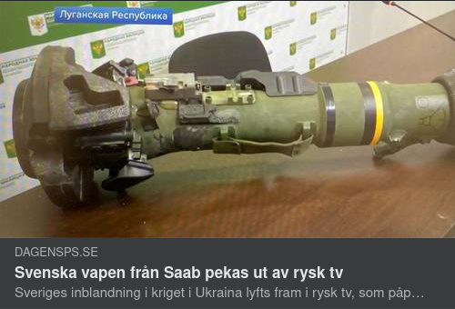 Sveriges inblandning i kriget i Ukraina lyfts fram i rysk tv, som påpekar att Robot 57 (NLAW) som används av ukrainarna är svenska vapen.