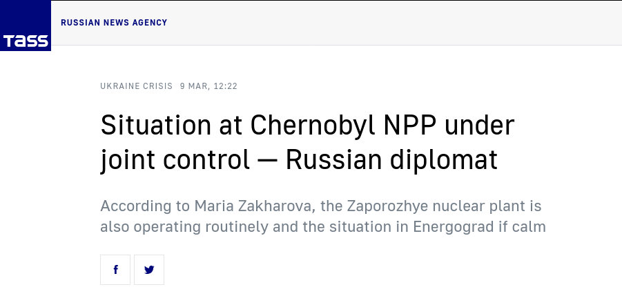 Ukrainas utrikesminister Dmytro Kuleba förklarade att när anläggningens reservdieselgeneratorer tar slut, "kommer kylsystemen för lagringsanläggningen för använt kärnbränsle att sluta, vilket gör strålningsläckor nära förestående." Detta, sa han, skulle sätta "hela Europa i fara."