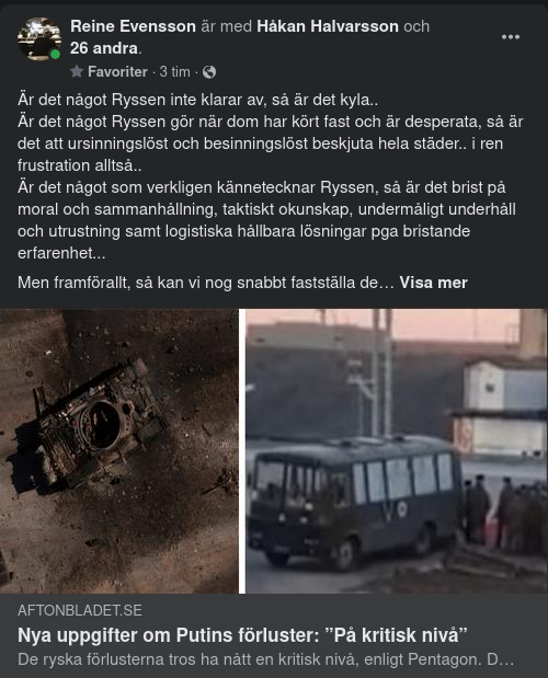Är det något som verkligen kännetecknar Ryssen, så är det brist på moral och sammanhållning, taktiskt okunskap, undermåligt underhåll och utrustning samt logistiska hållbara lösningar pga bristande erfarenhet...
