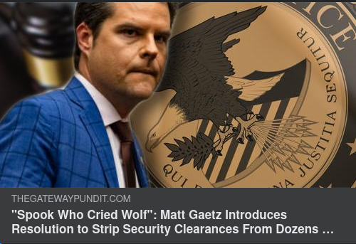 " På tisdagen presenterade representanten Matt Gaetz (R-FL) en ny parlamentsresolution som skulle ta bort säkerhetstillstånd från dussintals federala underrättelsetjänstemän som skrev på ett brev som förklarade den ökända Hunter Biden-datorn som "rysk desinformation" kort efter att den dök upp i månaderna fram till det riggade valet 2020.