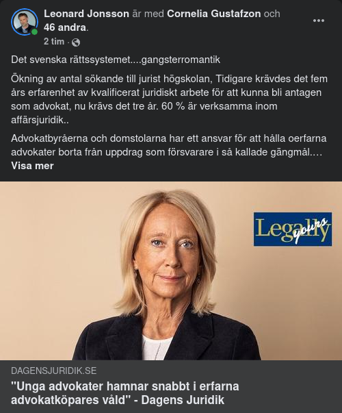 – Nej, när man nu i efterhand ser att den här typen av svåra uppdrag hamnar hos unga och oerfarna advokater kan jag tycka att det vore önskvärt med större erfarenhet för att bättre kunna hantera de här målen och de här klienterna.