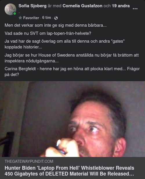 "Så detta betyder att våra underrättelsetjänster, som fortfarande inte ens har erkänt att de har Hunter Bidens bärbara dator, uppenbarligen flitigt gjorde cachesökningar över internet för att ta reda på om något av det här släpptes. Det borde skrämma varenda en anständig person i väst."