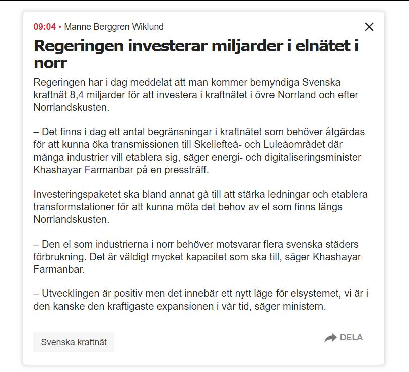 Miljardinvestering I Övre Norrlands Elnät