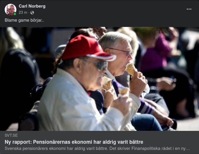 https://www.svt.se/nyheter/inrikes/finanspolitiska-radet-pensionarernas-ekonomi-har-aldrig-varit-battre?fbclid=IwAR0p0CaJplKM-Gq61D3ZgwsxzGMYBSj1YGDlwdQMGj_UCdFzCN-2lJFUNDM