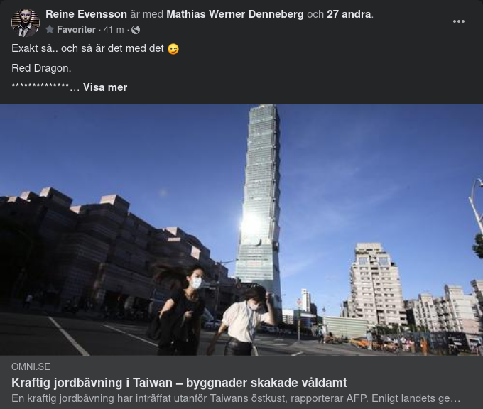 Kraftig jordbävning i Taiwan – byggnader skakade våldamt