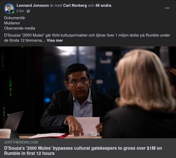 D'Souzas "2000 Mules" går förbi kulturportvakter och tjänar över 1 miljon dollar på Rumble under de första 12 timmarna