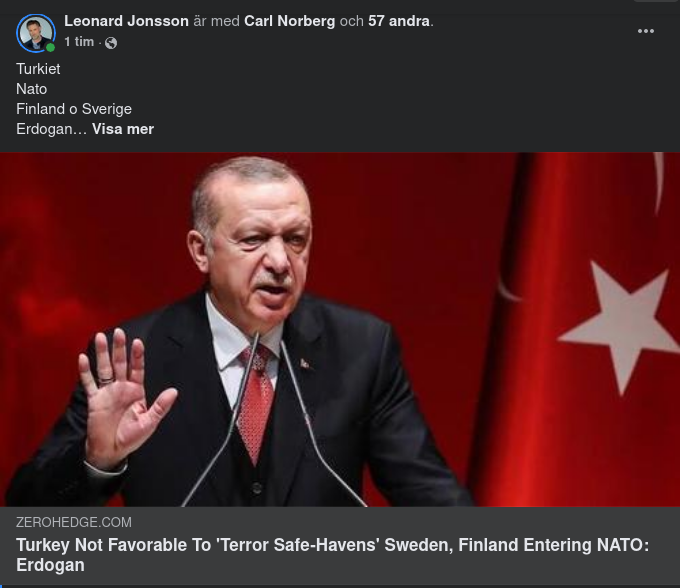 Natos nummer två största militär har precis sprängt Finland och Sveriges potentiella medlemskapsanbud, med Recep Tayyip Erdoğan i tv-kommentarer till reportrar som beskriver de skandinaviska länderna som säkra tillflyktsorter för "terrorism".