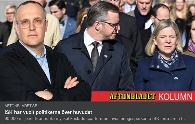 "Sedan införandet 2012 har ISK inneburit sisådär 175 miljarder i lägre skatteintäkter. Eftersom 1 procent äger 35 procent av de 1570 miljarderna som finns på ISK-konton innebär det att 60 miljarder av subventionen landat hos 0,3 procent av svenskarna.