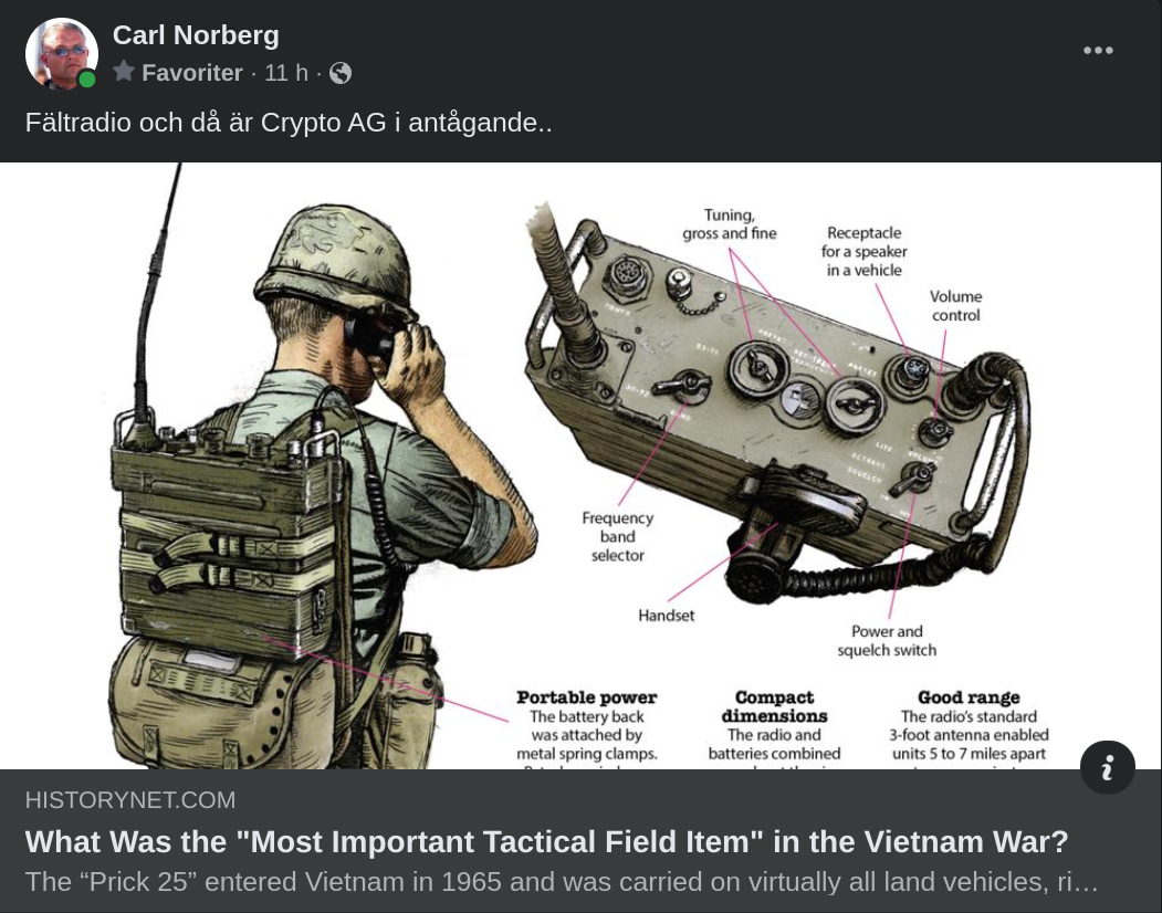 Fältradio och då är Crypto AG i antågande..https://www.historynet.com/vietnam-an-prc-25-radio/