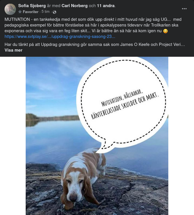 MUTIVATION - en tankekedja med det som dök upp direkt i mitt huvud när jag såg UG... med pedagogiska exempel för bättre förståelse så här i apokalypsens tidevarv när Trollkarlen ska exponeras och visa sig vara en feg liten skit... Vi är bättre än så här så kom igen nu https://www.svtplay.se/.../uppdrag-granskning-sasong-23...