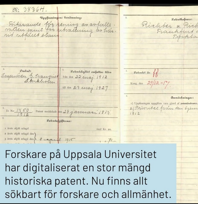 "Idag invigs svenskahistoriskapatent.se – en ny databas med historiska patent från 1746–1945. David Andersson på Uppsala Universitet ekonomiska institution är en av forskarna bakom databasen: