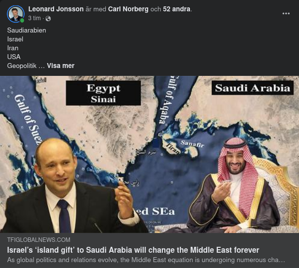 Enligt Haaretz ser Israel över Saudiarabiens förslag att ändra den internationella statusen för öarna Tiran och Sanafir i Röda havet och överföra dem till Saudiarabien.