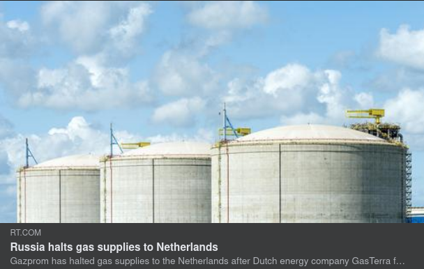 " Nederländerna har blivit det fjärde landet som slutar ta emot rysk naturgas efter beslutet att inte betala för leveranser i rubel. Rysslands energijätte Gazprom meddelade på tisdagen att man " helt stoppat gastillförseln " till den holländska statliga energigrossisten GasTerra.