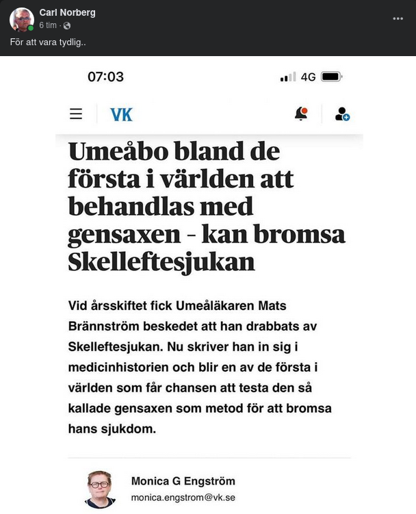 Bidra genom att Swisha till 076-118 25 68, mottagare är Caroline Norberg.