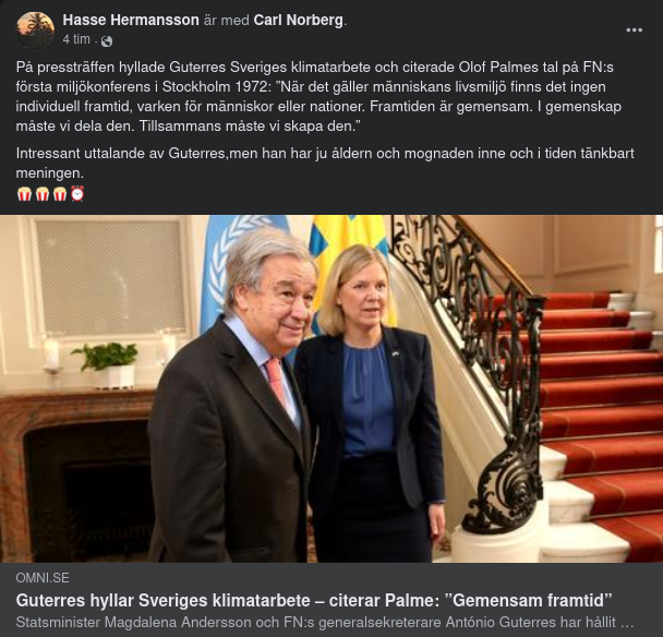FN:s generalsekreterare Antonio Guterres kritiserar Sverige och andra länder som sviker löftet om att leverera det klimatbistånd som är kopplat till Parisavtalet.