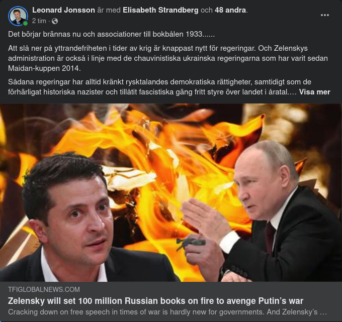 https://tfiglobalnews.com/2022/06/13/zelensky-will-set-100-million-russian-books-on-fire-to-avenge-putins-war/?fbclid=IwAR3df06g4khBdSc_GdvpT7xDT7PZ_TGytwWPnGwzVOJCDJsj516PyxaYdug