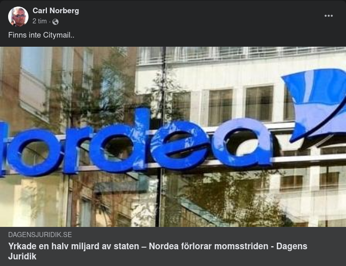 https://www.dagensjuridik.se/nyheter/yrkade-en-halv-miljard-av-staten-nordea-forlorar-momsstriden/?fbclid=IwAR2i9GHAE0yS7ZOYyjmovw8r3-qEWv5WyJHF2s0DK1aUxIqDHl4t543mhjY
