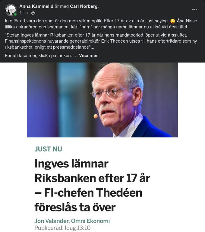 https://www.di.se/live/stefan-ingves-lamnar-riksbanken-erik-thedeen-blir-ny-riksbankschef/?fbclid=IwAR0O1InbmqLSwbbJ81wZpjwhTI-pxQ-AiiGtGZCrH37vIwNRxFFsyemNXrY