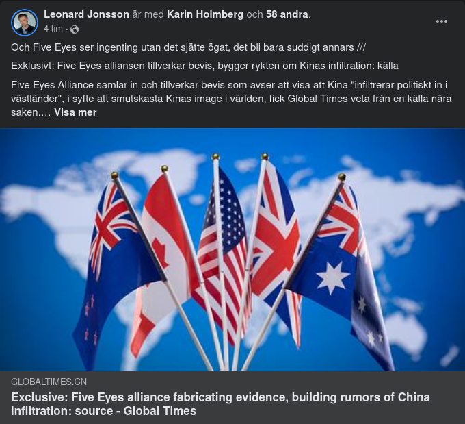 Exklusivt: Five Eyes-alliansen tillverkar bevis, bygger rykten om Kinas infiltration: källa