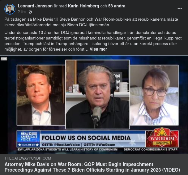 Mike Davis sa till publiken i The War Room på tisdagen att republikaner till att börja med måste inleda riksrättsförfaranden mot minst sju Biden-tjänstemän när de tar tillbaka kongressen nästa år.