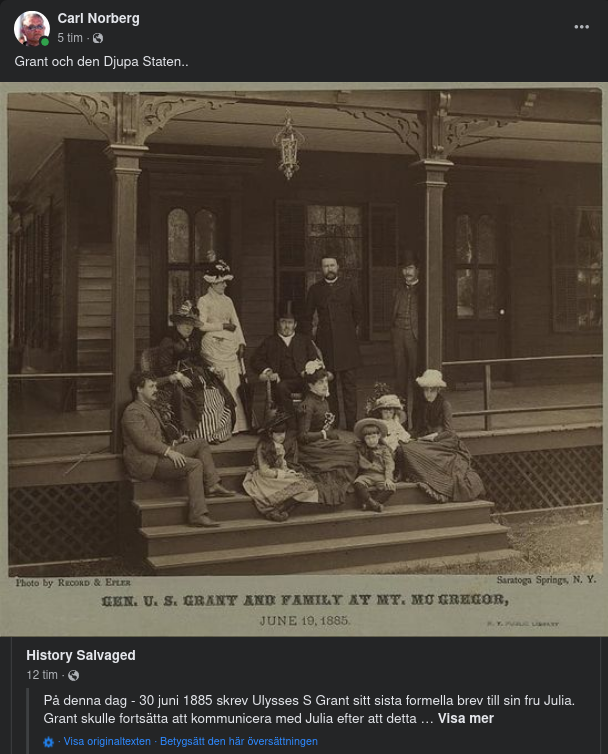Grant dog mindre än en månad efter att ha skrivit detta sista brev, omgiven av sina största glädjeämnen, Julia och deras barn. Hela brevet finns att läsa i hans pappersinsamling på https://scholarsjunction.msstate.edu/usg-volumes/30/ på sidan 376.