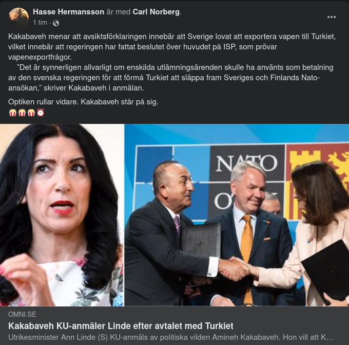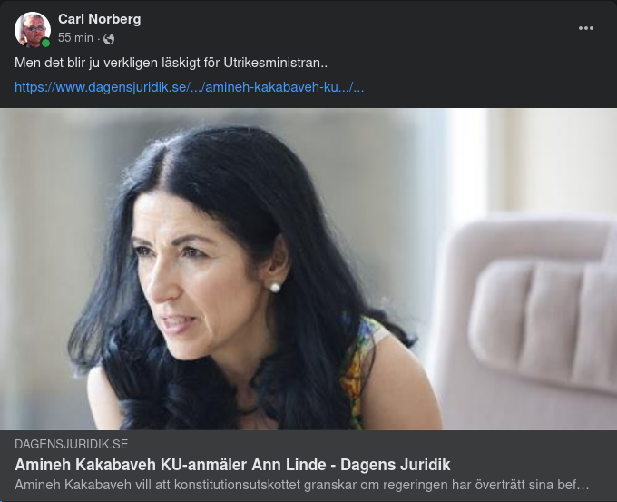 https://www.dagensjuridik.se/nyheter/amineh-kakabaveh-ku-anmaler-ann-linde/?fbclid=IwAR0ZjhbdK2SUK4ALfj4tuOA3UQPWNGlqIHrltcIfMbzMyj-YnN7u81wg7MU