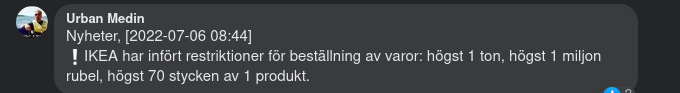 ”Från och med den 5 juli och några veckor framåt kan du köpa Ikea-varor endast på ikea.ru. Varorna kommer att vara till salu så länge de finns i lager”, skriver Ikea på sin ryska webbplats.