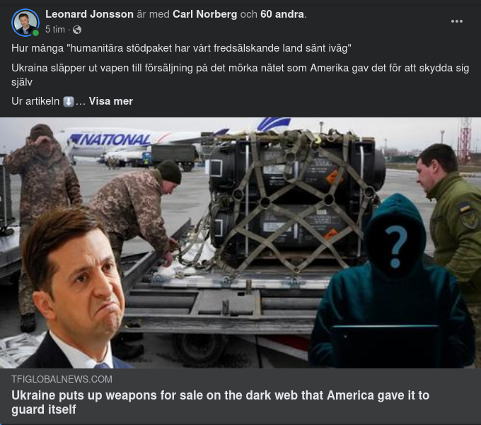 Detta var dock inte tillräckligt för att tillfredsställa Mr Zelenskys frosseri. För att fodra sina fickor gör han något som kan chockera dig. Det finns överväldigande bevis för att många av de vapen som USA, Storbritannien och andra NATO-länder på ett överdådigt sätt levererade till Ukraina under dess konfrontation med Ryssland har hamnat på det mörka nätet .
