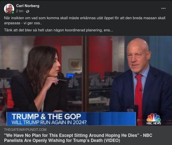https://www.thegatewaypundit.com/2022/07/no-plan-except-sitting-around-hoping-dies-nbc-panelists-openly-wishing-trumps-death-video/?utm_source=Facebook&utm_medium=PostSideSharingButtons&utm_campaign=websitesharingbuttons&fbclid=IwAR3xSxXgYC5sKPiY46OnbSRd7Tfa8M98zp1xodi9bezmHIMdK1XZPUi1Ws4