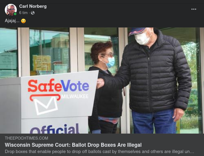 https://www.theepochtimes.com/wisconsin-supreme-court-drop-boxes-for-absentee-ballots-are-illegal_4585345.html?utm_source=partner&utm_campaign=imctgm01&fbclid=IwAR1GMtiwxiORoLU04v0x2Pi397jDd8BEZk3OF8vc4lWcw84vZzrnik-sANY