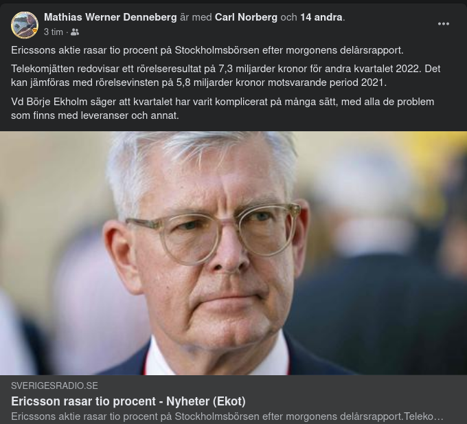 https://www.expressen.se/ekonomi/aktier-och-bors/samre-resultat-an-vantat-for-ericsson/?fbclid=IwAR1Aq6dLScw8tQbG1y_kGl8KoSc9Sdmai6ozT8bCVBf1eRx4DTfxUazXa48