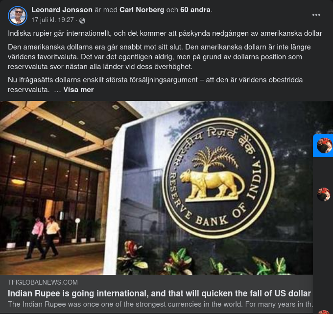 Indiska rupier går internationellt, och det kommer att påskynda nedgången av amerikanska dollar