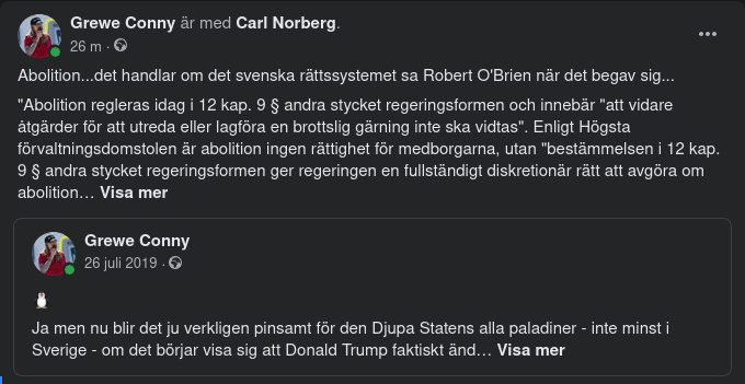 Ja men nu blir det ju verkligen pinsamt för den Djupa Statens alla paladiner - inte minst i Sverige - om det börjar visa sig att Donald Trump faktiskt ändå har ett helt annat syfte med hela manövern och att det syftet har att göra med att börja belysa Sverige som land och struktur ur ett internationellt perspektiv, samt att rättsfallet och processen som sådan faktiskt bara har varit ett verktyg för att nå just det det syftet....