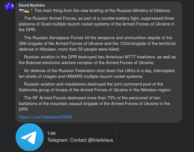 Rysslands försvarsministerium säger också att en riktad attack träffade USA-levererade M777-haubitsar i Ukraina.