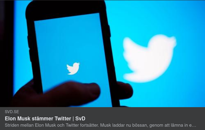 Musk gick i april ut med att han ville köpa Twitter, med ett bud på 54:20 dollar per aktie. För några veckor sedan drog han dock tillbaka budet, och hävdade att Twitter blåst upp sina användarsiffror och att många av kontona i själva verket består av botar, spam- och fejkkonton.