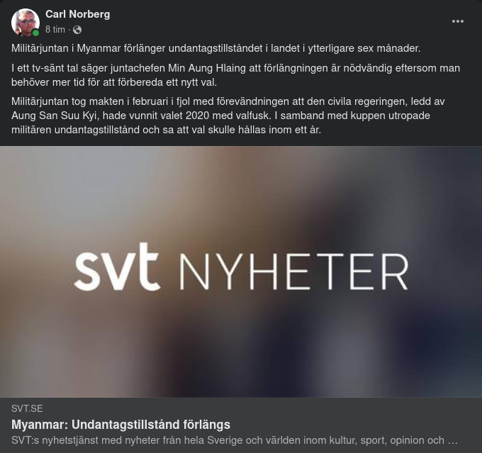 https://www.svt.se/nyheter/snabbkollen/myanmar-undantagstillstand-forlangs?fbclid=IwAR0ZB2SRCdoIEYAs5OF3S_03kbFjcMAxzTGTVs8BVd8wbtc5xI2rc4S_aJ8
