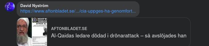https://www.aftonbladet.se/nyheter/a/k62A76/cia-uppges-ha-genomfort-attack-mot-al-qaida?fbclid=IwAR0UU30Kp9bhBuypFjLP4MFw0Q3aXvWMc6NlYA38f5dlsrENgI3jQcVixxA