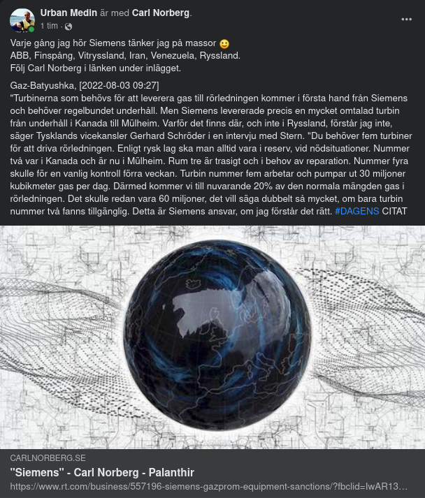 Under de senaste veckorna har den ryska energileverantören Gazprom minskat gasflödet via Nord Stream 1 till 20 % kapacitet med hänvisning till tekniska problem med Siemens turbiner vid en kompressorstation.