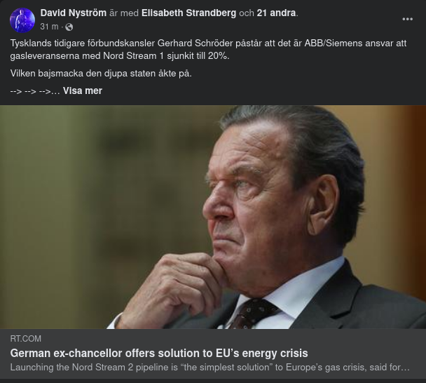 ysklands förre kansler Gerhard Schröder har erbjudit "den enklaste lösningen" på Europas nuvarande energikris – att slå på gasledningen Nord Stream 2.