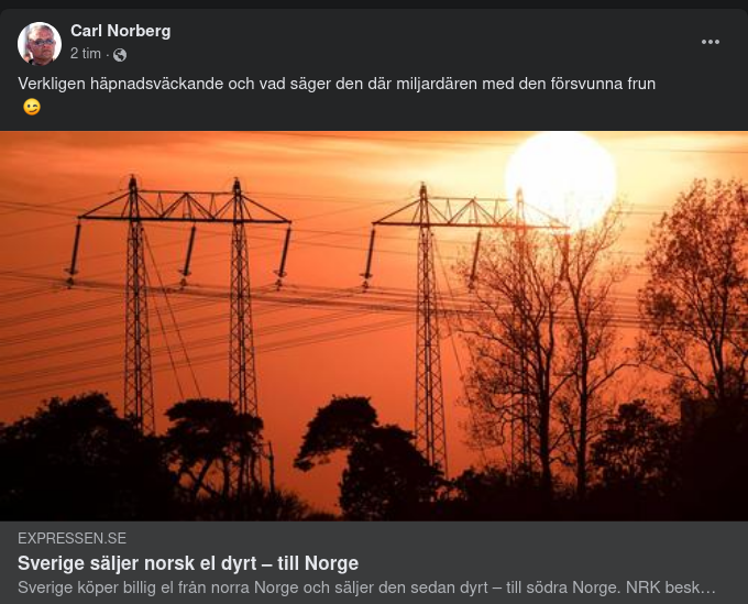 https://www.expressen.se/nyheter/sverige-saljer-norsk--el-dyrt-till-norge/?fbclid=IwAR314KFuULivCWveHM-eivAJBy5EZlKUS2iONUUFo0Qb1JfCXisXEIupEzY