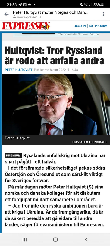 Hultqvist Tror Ryssland Redo Att Anfalla Andra