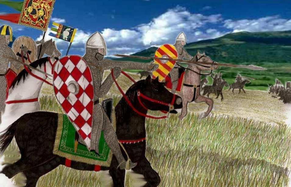 Richard De Aversa on the Norman right smashed into the Italians. So fierce was his charge that the Italians broke rank and fled. In the centre the fighting was difficult, the Swabians with their gigantic two handed swords held the line with ferocious fighting spirit, cutting men and horse in two. Robert Guiscard brought his Norman knights into the centre to try and finish off the Germans. Three times he had a horse cut down from under him, and three times he mounted another and returned into the fray. Only when Richard De Aversa returned from routing the Italians was the battle decided. Surrounded on all sides, the Swabian Germans fought desperately to the last man, no quarter was asked and no quarter was given. The Normans against all odds and against an army probably twice their size had triumphed.