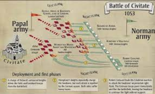 The citizens of Civitate at first defiant, promptly handed over the Pope to the Normans in fear of retribution. Almost embarrassed by the capture of the Holy Father, the Normans treated Pope Leo IX with respect, asking for his pardon and forgiveness. The hapless Pope was carted off to Benevento and kept prisoner for nine months. The campaign to ouest the Normans out of Italy had failed and the Normans were there to stay.