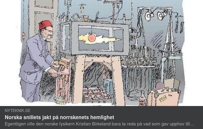 " “Våren 1906 ansökte Birkeland Marcus och Knut Wallenberg om mycket pengar för att hitta en metod att utnyttja kärnkraften. Han skriver: "Det största industriella problemet som någonsin har presenterat sig för mig. ... Målet är att få mer energi från 1 kg järn än vad du för närvarande får från 100 000 kg kol." Ansökan baserades på en upptäckt han just gjort. Wallenbergarna var mycket intresserade, men ville avvakta med ett slutgiltigt svar tills de återhämtat sig lite från vad de satsat på Norsk Hydro.”