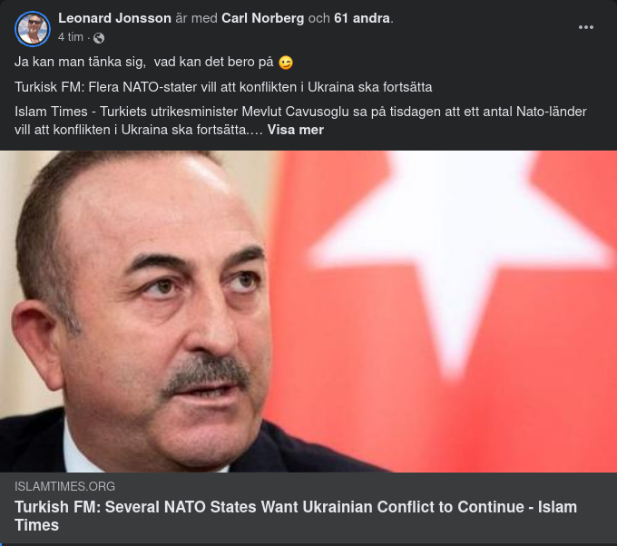 Islam Times - Turkiets utrikesminister Mevlut Cavusoglu sa på tisdagen att ett antal Nato-länder vill att konflikten i Ukraina ska fortsätta.