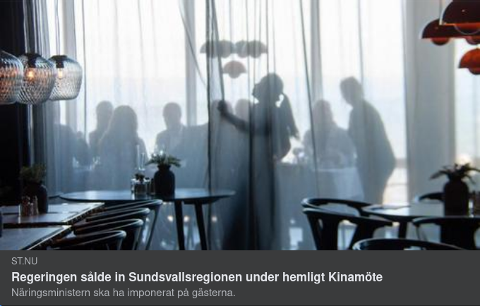ST har tidigare kunnat berätta om det hemliga företagsbesöket i Sundsvall i förra veckan. Nu står det klart att också regeringen är djupt inblandad i arbetet att sälja in Sundsvallsregionen till de kinesiska gästerna. Det visar interna mejl som ST tagit del av.
