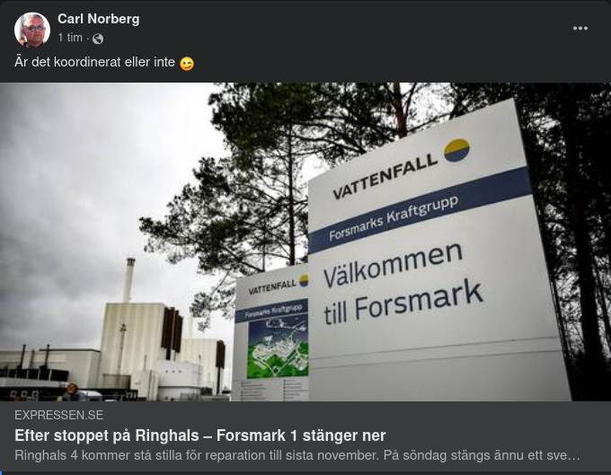 https://www.expressen.se/ekonomi/efter-stoppet-pa-ringhals-forsmark-1-stanger-ner/?fbclid=IwAR0AQDBne18AZ1VlHkqKbDEdw5vIKZKnvtVdASPbBH9TzoCKUl4HgN4IqQA